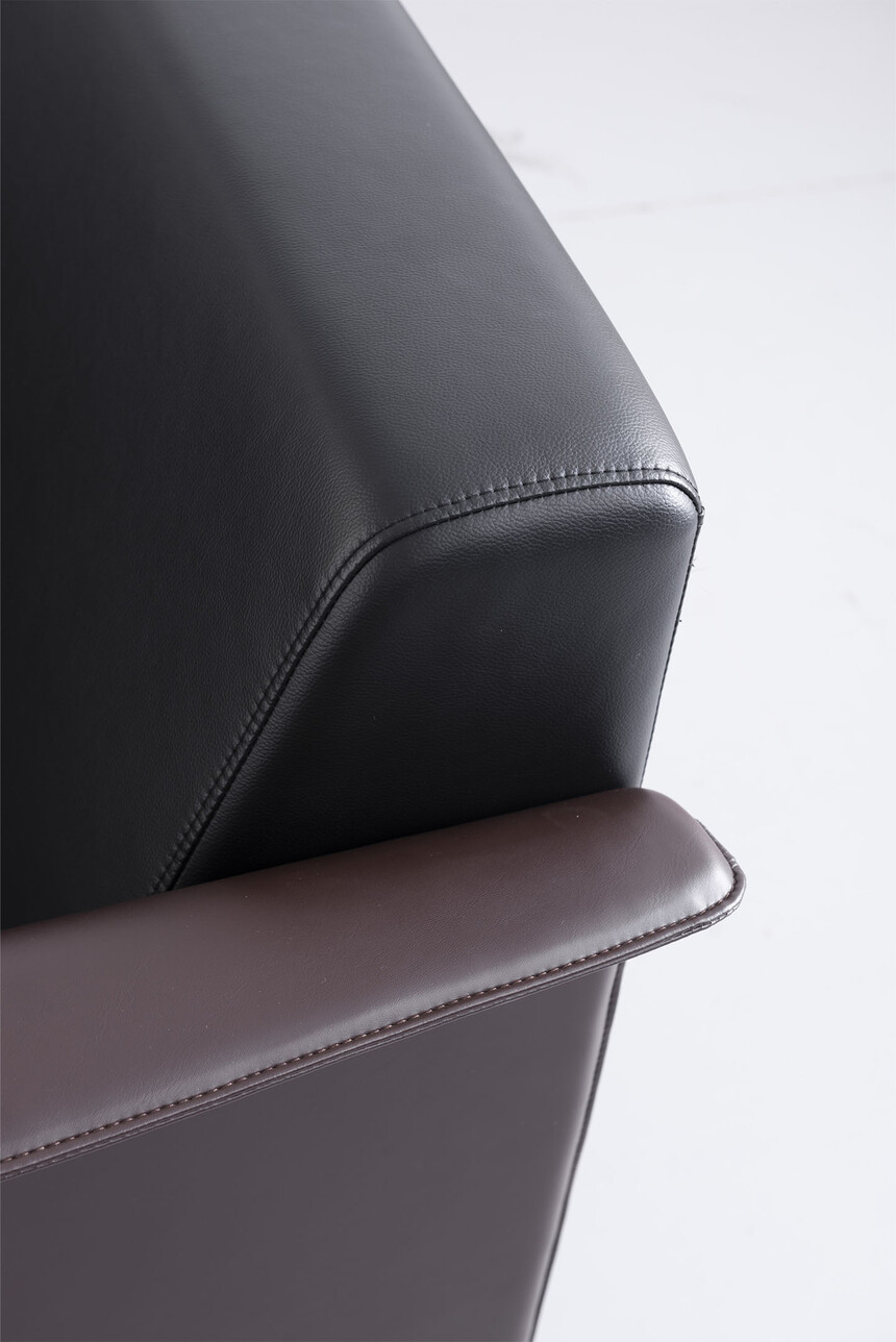 1、面料:選用高級超纖皮,經(jīng)液態(tài)浸色及防潮、防污等工藝處理、皮面更加柔軟舒適、光澤持久性好,紋理細膩,富有彈性。2、實(shí)木板框架:優(yōu)質(zhì)進(jìn)口含水率低9%以下的硬木木方及5mm的多層夾板,經(jīng)防蟲(chóng)、防腐等化學(xué)處理。3、海綿:采用杜邦公司的PU成型發(fā)泡高密度海綿高回彈海綿,表面有一層保護面,可防氧化,防碎,經(jīng)過(guò)HD測試永不變形,靠背密度≧27kg/m3,座墊密度≧36kg/m3,回彈性≧35%,拉伸強度95kpa,撕裂強度達3.3N/cm,斷裂伸長(cháng)率達185%,壓陷硬度190N。4、工藝:采用人體工學(xué)設計,坐感舒適!