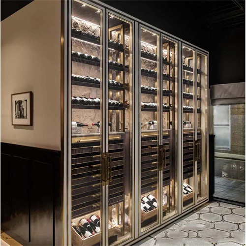 酒莊玫瑰金不銹鋼恒溫酒柜酒窖定做_不銹鋼恒溫酒柜廠(chǎng)家圖