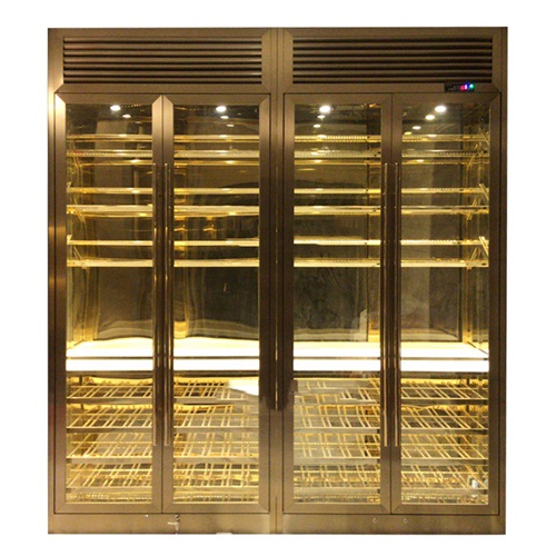 大型輕奢不銹鋼香檳金恒溫酒柜_不銹鋼酒柜廠(chǎng)家定制圖