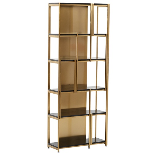 現代輕奢香檳金不銹鋼書(shū)架_不銹鋼書(shū)架書(shū)柜金屬制品圖