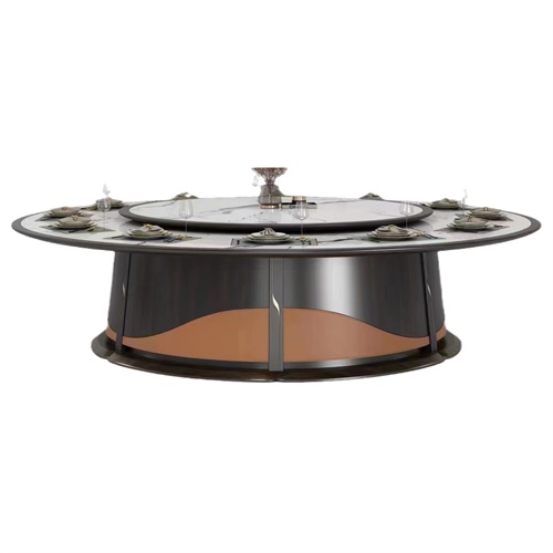酒店會(huì )所新中式輕奢巖板電動(dòng)餐桌大圓桌圖