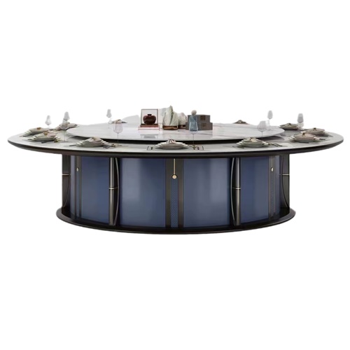 酒店會(huì )所時(shí)尚輕奢大理石電動(dòng)餐桌大圓桌圖