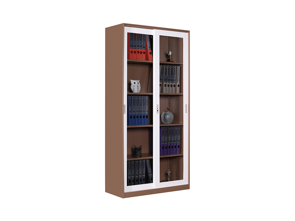 ● 一體結構設置,上部玻璃對開(kāi)門(mén),內置1層層板可調高度,內置物品可視,便于拿取,中間2個(gè)抽屜,下部對開(kāi)鐵門(mén)、門(mén)內一格板,設置有拉手和鎖。