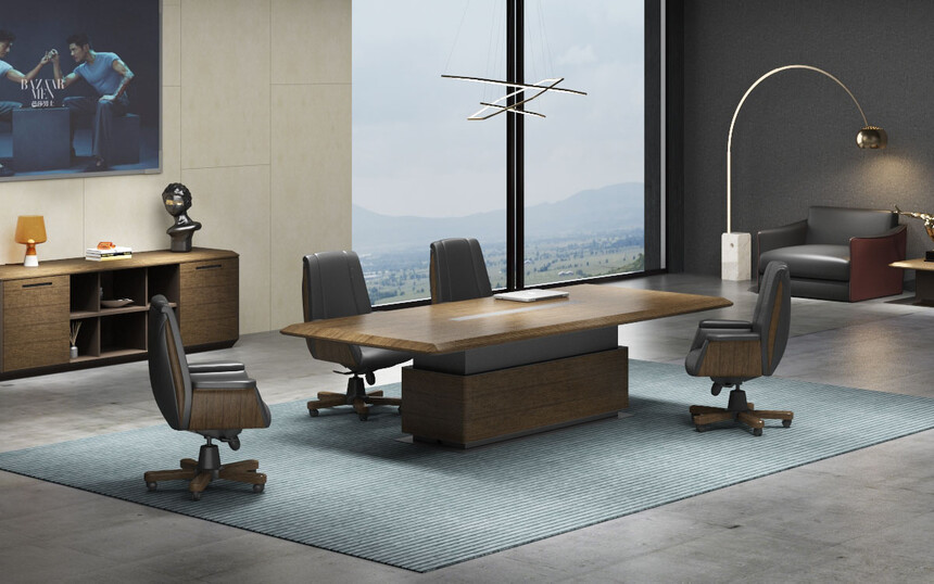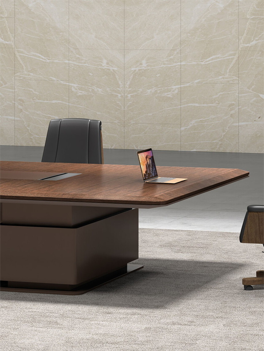 維登系列名取自經(jīng)典奢侈品牌,時(shí)尚界品位和地位的象征—路易威登 (LV)。卓越品質(zhì),杰出創(chuàng )意和精湛工藝,LV 的三大特點(diǎn)在維登產(chǎn)品上得到完美體現:進(jìn)口直紋胡桃木皮搭配獨特的棕色金屬漆,款式造型時(shí)尚大氣,精湛的斜切邊工藝,再配上優(yōu)質(zhì)進(jìn)口五金配件,盡顯總裁辦公產(chǎn)品的高端和尊貴。
