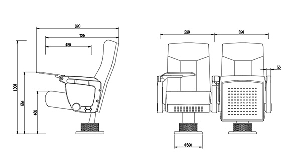 | 座椅深度:880±10mm,扶手高664±10mm:最小排距:900mm。 |