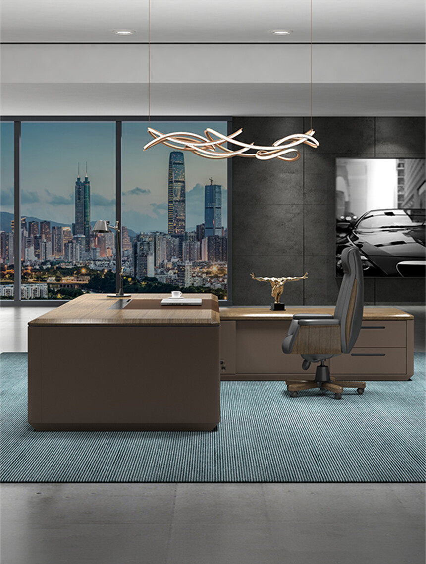 維登系列名取自經(jīng)典奢侈品牌,時(shí)尚界品位和地位的象征—路易威登 (LV)。卓越品質(zhì),杰出創(chuàng )意和精湛工藝,LV 的三大特點(diǎn)在維登產(chǎn)品上得到完美體現:進(jìn)口直紋胡桃木皮搭配獨特的棕色金屬漆,款式造型時(shí)尚大氣,精湛的斜切邊工藝,再配上優(yōu)質(zhì)進(jìn)口五金配件,盡顯總裁辦公產(chǎn)品的高端和尊貴。